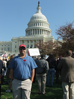 There were probably around 20,000 people there by the time we walked down, a lot of organized groups that came on busses, or were obviously from the same association. They were all there to protest President Obama's new health care bill. There were political signs everywhere! They believe that it is anti-american to give everyone in their country to health care, that it is a socialist ideal that will wreck their way of life, take away their freedom, and increase their taxes. We saw again, the lovely caricature of President Obama with a Hitler mustache that caused David to get into a street side debate in